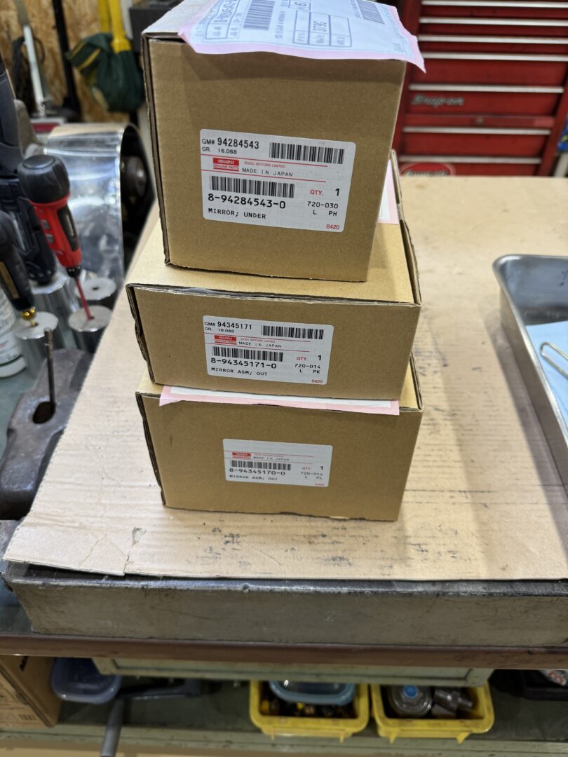 投稿日: 2026年4月10日いすゞ自動車部品 いすゞファーゴさんのバックミラー3点 いすゞ純正部品が入手できました 30年前の車体なのにありがたいです。 MADE IN JAPAN の文字! 素晴らしい! 次の車もいすゞの車にしようかしら(単純)