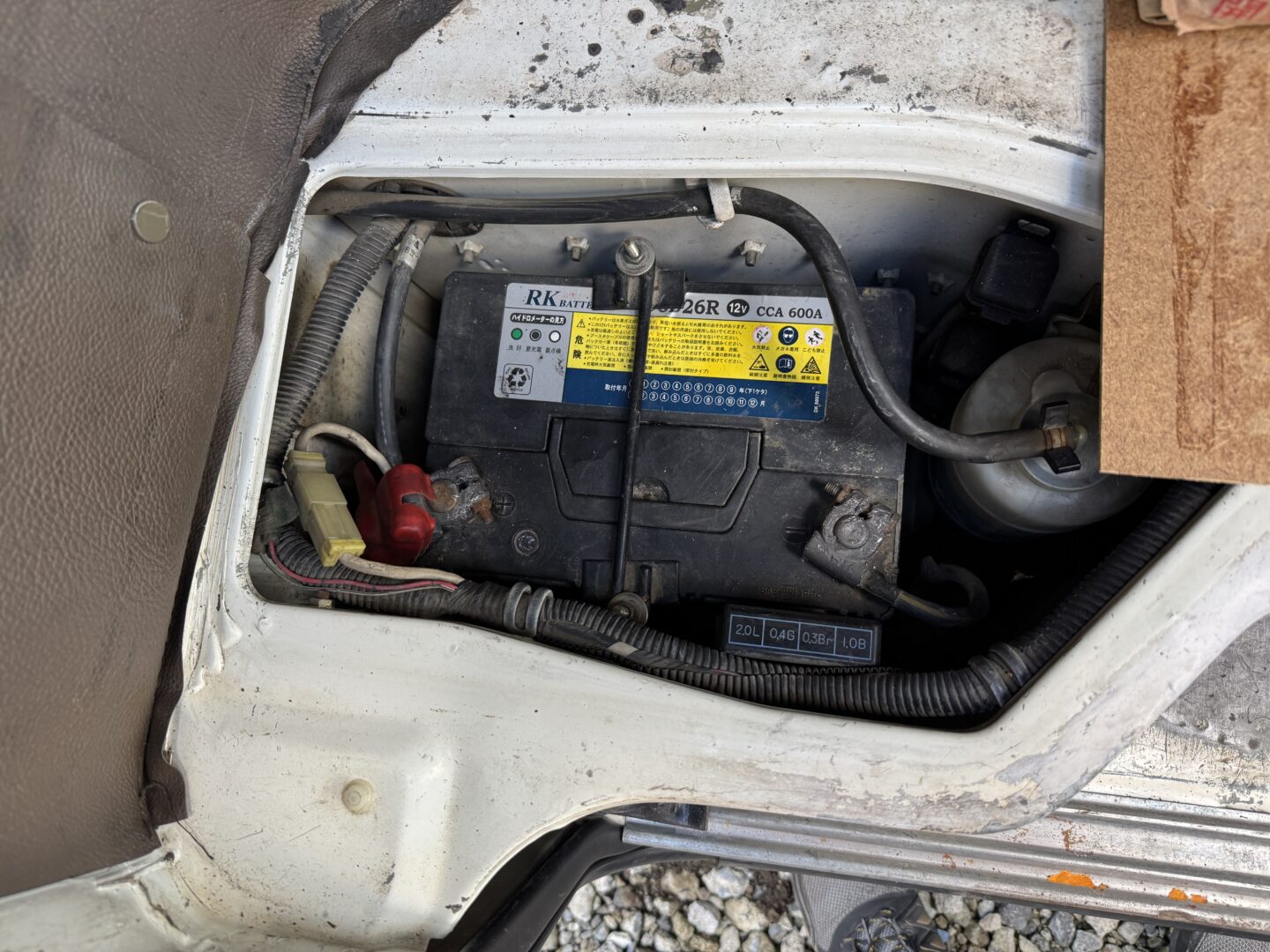 投稿日: 2025年11月10日 投稿者: kamakichi不動 今日、ファーゴさんを動かそうと思ったら セルが回りませんでした だいぶばっちいです 裏のは H31 の文字 そりーだめだ! 充電器につなぐと、一応生きてはいるみたいですが・・・変えましょう。