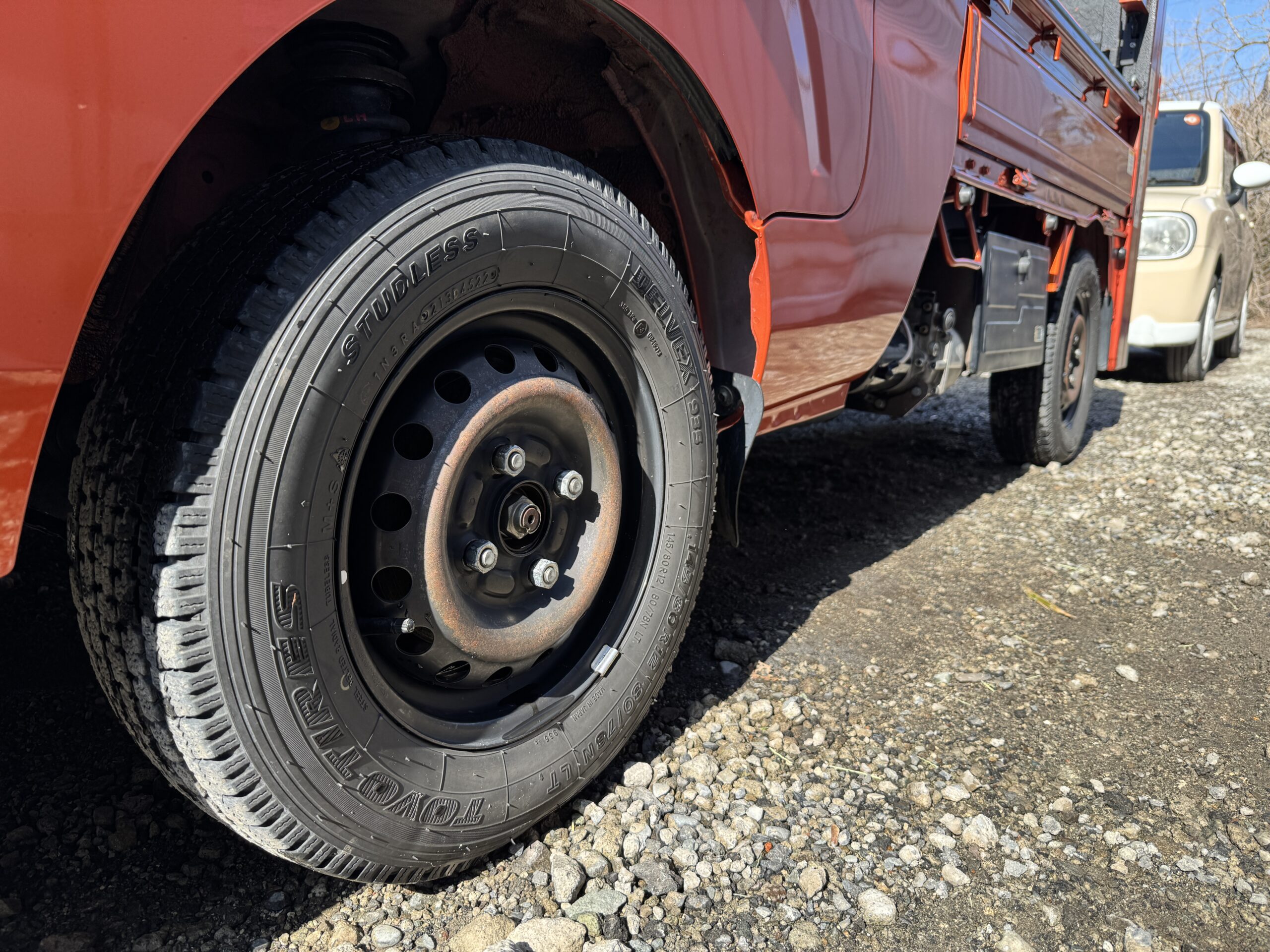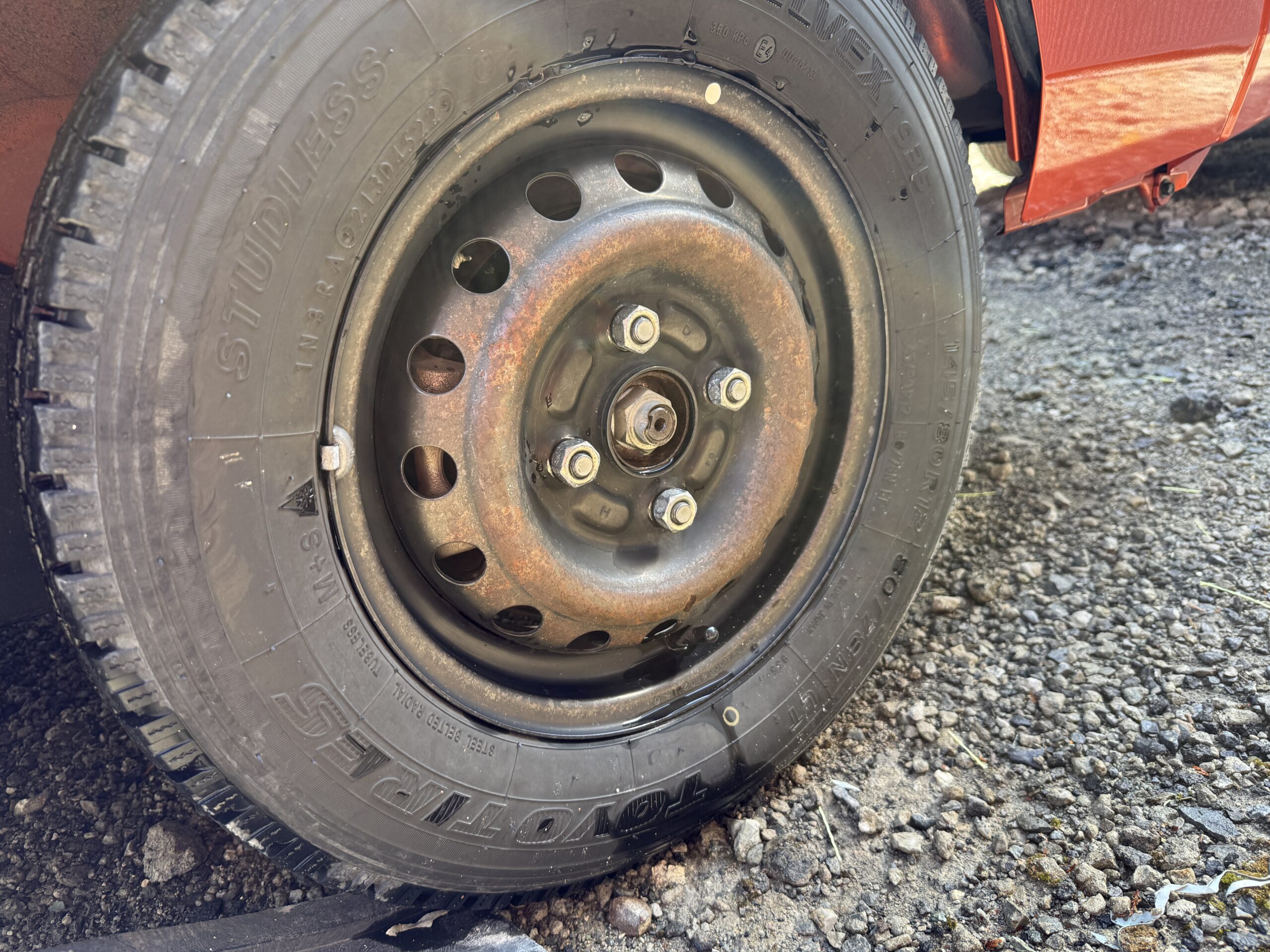 投稿日: 2026年2月15日2026年2月15日 投稿者: kamakichi遅かった 先日、雪道ツーリングに出かけた後そのままだったハイゼットジャンボさん ヤバイです 今日は暖かかったので洗車しましたが もともと、塗装が薄かった鉄チンホイールが 錆ました。 あーあー